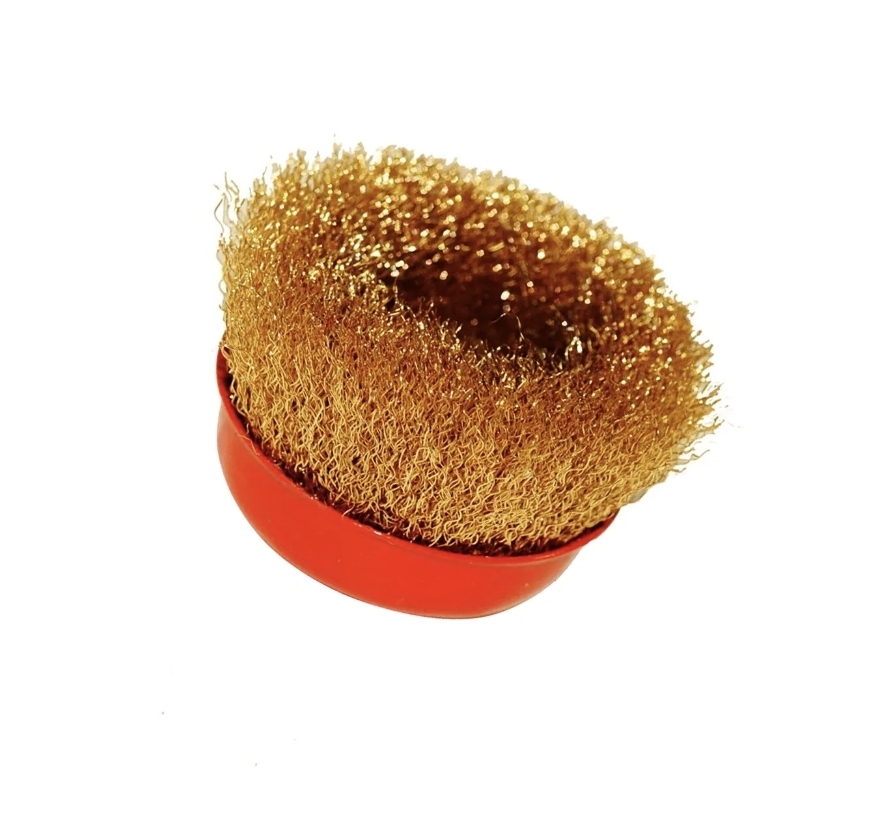Корщетка-чашка латунированная 100 мм для УШМ предназначена для зачистки изделий, удаления ржавчины и грязи. Оснастка крепится к инструменту при помощи гайки М14.